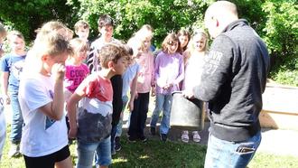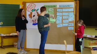 Im Rahmen ihrer Ausbildung zur Moderatorin für Kinder- und Jugendbeteiligung, führten Astrid Härtel von der Gemeindeverwaltung und Annette Reichmann das Projekt durch. Ziel war es einen „Ort für naturnahes Lernen“ zu entwickeln, d.h., in diesem Fall die ungenutzte Fläche hinter dem Schulgebäude in einen Schulgarten umzuplanen. Zukunftswerkstätten sind ein erfolgreiches Konzept, um auch schon die Jüngsten in Planungsprozesse mit einzubinden und damit auch erfolgreich an der Gestaltung ihrer Umwelt zu beteiligen. Zukunftswerkstätten bestehen der Regel aus drei Phasen, die die Schülerinnen und Schüler der Klasse von Monica Becker mit viel Spaß, Neugier und Enthusiasmus erledigt haben.