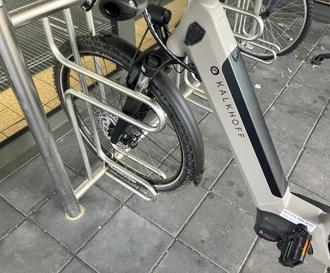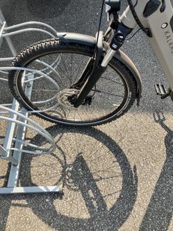 Vorderrad- und Spiralhalter sind „Felgen-Brecher“ und daher ungeeignet. Das Fahrrad kann in diesen Abstellsystemen leicht umfallen und das Vorderrad verbogen werden. Prinzipiell sollten diese Systeme der Vergangenheit angehören. Allerdings sind Sie auch in der Gemeinde Losheim am See noch teilweise im Einsatz, wie die nachfolgenden Fotos verdeutlichen. Dieser Umstand sorgt bei Radfahrenden regelmäßig für Unverständnis. Neben den zuvor beschriebenen Kriterien wirken sich die schmalen Vorderradhalter generell limitierend für viele Fahrräder aus. Neben Mountainbikes haben moderne E-Bikes heute häufig breitere Reifen, als es früher üblich war. So stößt der „Felgen-Brecher“ schnell an seine Grenzen, wenn es darum geht, das Fahrrad überhaupt einzustellen.