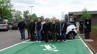 An der Eröffnung der neuen Ladeinfrastruktur nahmen neben Bürgermeister Helmut Harth (Dritter von links) sowohl Mitglieder des Gemeinderates als auch Beschäftigte der Gemeinde teil und informierten sich über die technische Ausstattung der Ladepunkte an der Tourist Information.