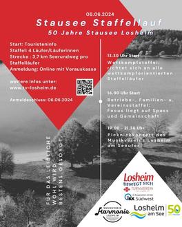 Nach dem 2. Staffellauf findet ein großes Picknick-Konzert des Musikverein Losheim statt. Beginn ca. 18.30 Uhr direkt am Ufer des Stausees, im Bereich der Tourist Info.