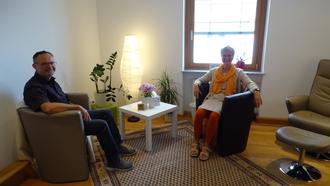 „In meine Arbeit fließen sowohl meine Kenntnisse und Erfahrungen aus meiner 4-jährigen Praxistätigkeit als Heilpraktikerin und Heilpraktikerin Psychotherapie als auch meine 24-jährige Erfahrung im Gesundheits- und Bewegungsbereich als Fitnessfachwirtin (u.a. als Rehasporttrainerin, Yogalehrerin, Pilatestrainerin und Personal Trainerin) ein“, erklärt Christine Rohrmüller die Grundlagen ihrer Arbeitsweise beim Besuch von Bürgermeister Helmut Harth in den neuen, freundlich gestalteten Praxisräumen.