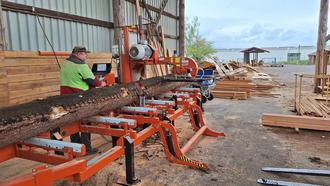 Ein zweites, herausragendes Merkmal des Losheimer Forstbetriebes ist das eigene mobile Sägewerk. Es ermöglicht, Holz direkt im Wald oder in unmittelbarer Nähe zu verarbeiten, z.B. zu Gattern, Zäunen oder hochwertigen Holzprodukten. Damit bleibt die gesamte Wertschöpfung in der Gemeinde Losheim am See. Besonders für den Bau der Wildschutzzäune ist dieses Sägewerk ein großer Vorteil: Die Gatter werden aus eigenem Schadholz gefertigt, sind komplett biologisch abbaubar und schützen die jungen Pflanzen zuverlässig vor Wildverbiss – eine Voraussetzung für eine erfolgreiche Waldverjüngung.