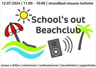 Der Fachbereich 5 Familie, Jugend, Senioren und Kultur Gemeinde Losheim am See veranstaltet am 12. Juli in der Zeit von 11 bis 19:00 Uhr ein Event für alle Schülerinnen und Schüler. Pünktlich zur Zeugnisvergabe können sie dann den letzten Schultag unter dem Motto "Das hast Du Dir verdient" feiern. Dazu sind alle Schülerinnen und Schüler bei freiem Eintritt herzlich eingeladen. Für die richtige Beachclubatmosphäre sorgt DJ Ferro. Zusätzlich besteht die Möglichkeit, an zahlreichen Aktionen wie Baumklettern, Tretbootrennen oder Beachvolleyball teilzunehmen. Oder einfach das Schuljahr gemütlich im Strandbad ausklingen zu lassen. Gleichzeitig präsentieren sich Jugendclubs der Gemeinde vor Ort sowie das Team der Streetworker und das Jugendbüro des Landkreises Merzig-Wadern.