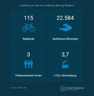 In der Gemeinde Losheim am See sind bisher 129 Teilnehmende in 15 Teams registriert, davon sind 115 Radelnde aktiv dabei. Die Anzahl der Teilnehmenden übersteigt somit bereits jetzt die des Vorjahres. Die hohe Resonanz kann daher schon vor Ende der Kampagne als klarer Erfolg gewertet werden und verdeutlicht, welch hohen Stellenwert das Fahrrad bereits in der Alltagsmobilität besitzt.