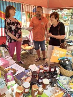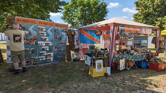 Eine Aera geht zu Ende: zwei Jahrzehnte engagierte und ausdauernde Zusammenarbeit für den kongolesischen Regenwald, die grüne Klimalunge unseres Planeten, und seine Bewohner, nicht zuletzt auch im Partnerschaftskomitee der Losheimer Nord – Süd – Partnerschaft mit Bokungu am Tshuapafluss. Projektverantwortliche, Partnerschaftsbeauftragte, gute Fee im Rathaus, ..., Silvia Kreis hat ihren wohlverdienten Ruhestand angetreten. Anlass für eine kleine Danksagung im Kongo – Pavillon am Outdoor – Festival „Draussen am See“. In seiner Dankesrede im Beisein des Vorstandes hob der Vorsitzende Michael Jochem vor allem die unermüdliche beständige Dienstbereitschaft von Silvia Kreis hervor und unterstrich die Gastfreundschaft, mit der die Partner und Besucher aus dem Herzen Afrikas sich in Losheim wohlfühlen konnten und Begegnung mit den Akteuren der Losheimer Zivilgesellschaft ermöglicht wurde. Zu erwähnen sind hier sicher der erste Besuch einer Delegation aus Anlass des Weltjugendtages 2005, dann 2008 der offizielle Partnerschaftsbesuch der Verwaltungschefin von Bokungu mit feierlicher Unterzeichnung der Partnerschaftsurkunden, ..., 2017 der Arbeitsbesuch der Tshuapa – Regenwalddelegation im Rahmen der Bonner Welt-Klimakonferenz mit einem Vertreter des Bokungu-Partnerschaftskomitees. Als Zeichen der Anerkennung und Dankeschön überreichte der Vorstand einen Ehrenbrief und ein handgezogenes afrikastämmiges Glücksbäumchen verbunden mit guten Wünschen für den neuen Lebensabschnitt. Im Anschluss freute sich der Konga-Freundeskreis Tshuapa e.V., Silvia Kreis als neues Vereinsmitglied begrüssen zu können. Dass das gemeinsame Engagment weitergeht, zeigte sich sogleich im Standdienst am Kongo – Pavillon. Merci!
