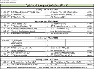 Das Sportfest in Mitlosheim auf dem Naturrasenplatz findet vom 04. bis 07.07.2025 statt.