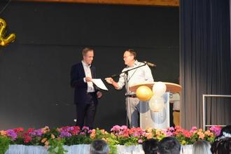 Bürgermeister Helmut Harth bedankte sich im Rahmen der Abiturfeier insbesondere für sein soziales Engagement bei Benjamin Lukas und wünschte dem Abiturient für seinen weiteren beruflichen und privaten Lebensweg viel Glück und Erfolg.