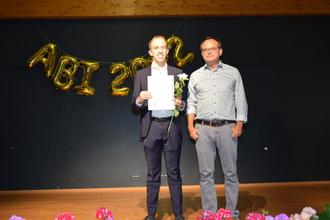 Der Abiturient Benjamin Lukas erhielt den Peter-Dewes-Preis 2022 für besonderes soziales Engagement und herausragende Leistungen im Unterrichtsfach Politik. Der Preis besteht aus einer Urkunden und einem Ehrengeschenk.