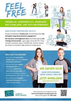 Ein Schuljahr lang ehrenamtlich engagieren? Vereine und unterschiedliche Tätigkeitsfelder kennenlernen, eigene Interessen und Talente entdecken? Das könnt ihr beim Projekt "FEEL FR.E.E. - Freiwillig. Ehrenamtlich. Engagiert".