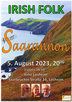Irish Folk ist nicht nur Musik, Irish Folk ist ein Gefühl! Saarannon und die Filmfreunde Losheim in der Reihe „Kultur im Kino“ laden ein zu einer musikalischen Reise quer durch Irland - lassen Sie sich einfangen von der unverwüstlichen Lebensfreude der Iren!