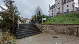 Die Treppe an der Wahlener Kirche wurde umfassend saniert – finanziert durch Zuschüsse des Ministeriums für Umwelt und Verbraucherschutz, der Kath. Kirchengemeinde Losheim am See sowie Eigenmittel der Gemeinde.