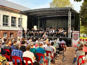 Die neue mobile Trailerbühne bei ihrem ersten Einsatz im Rahmen des Eröffnungskonzertes des Musikvereins Hausbach. Foto: Dirk Neuhof