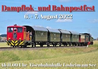 Es ist wieder soweit! Nach zweijähriger Coronapause führt der Museums-Eisenbahn-Club Losheim in Zusammenarbeit mit der Arbeitsgemeinschaft Bahnpost am 06. und 07. August 2022 traditionell wieder ein großes Dampflok- und Bahnpostfest zum 40-jährigen Bestehen der Museumsbahn durch. Die Fahrten auf der Strecke zwischen Losheim, dem großen Wald und der Dellborner Mühle beginnen Samstags um 13.30 Uhr. Weitere Fahrten sind für 15.00 Uhr und 16.30 Uhr geplant. Der Sonntag beginnt um 11.00 Uhr mit einem Fotosonderzug, der an zahlreichen Punkten der Strecke zum Fotohalt einlädt. Nachmittags fährt der Zug zu den bekannten Zeiten, um 13.30 Uhr, 15.00 Uhr und 16.30 Uhr. Zum Einsatz kommt an diesem Wochenende die 74-jährige Saarberglok 34 und der historische Wagenpark aus den Jahren 1903-1930. Das Bahnpostmuseum am Losheimer Bahnhof hat an beiden Tagen von 12-18 Uhr geöffnet. Für das leibliche Wohl ist mit Grillspezialitäten, Pommes und hausgemachter Currysoße bestens gesorgt. Kaffee und Kuchen gibt es im Zug und am Bahnhof. Zudem gibt es am Bierwagen Fassbier und allerlei alkoholfreie Getränke. Für die festliche Stimmung sorgen Sonntags ab 12.30 Uhr die „OLDIES“. Zur Belustigung der kleinen Fahrgäste steht außerdem eine Hüpfburg im Bahnhofsbereich zur Verfügung.