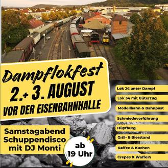 Auch in diesem Jahr veranstaltet der Museums-Eisenbahn-Club Losheim am ersten Augustwochenende wieder unser traditionelles Dampflok- und Bahnpostfest. Die Veranstaltung findet dieses Jahr erneut auf dem Vorplatz der Eisenbahnhalle und dem Betriebsgelände statt.