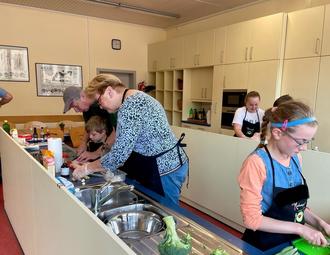 Eine Woche lang herrschte reges Treiben in der Schulküche der Peter-Dewes-Gemeinschaftsschule in Losheim am See. Im Rahmen des Projekts "Die Küchenpartie mit peb" fanden sich dort 13 kochbegeisterte Teilnehmende im Alter von 6 bis 16 Jahren sowie ab 55 Jahren ein. Gemeinsam mit der Seniorenbeauftragten der Gemeinde Losheim am See, Lisa Pfeffler, trafen sie sich, um gemeinsam zu kochen und voneinander zu lernen. Unterstützt wurde das Projekt durch den Landkreis Merzig-Wadern und das Projektbüro Gesundheits- und Präventionslandkreis Merzig-Wadern. Die Küchenpartie wurde von der Plattform Ernährung und Bewegung (peb) entwickelt und in der Durchführung begleitet.