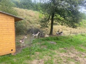 Seit dem 22. Juli haben nun acht Ziegen vom Ziegenhof Leser in Rimlingen damit begonnen, die Mäh- und Pflegearbeiten für die Gemeinde Losheim am See in ökologischer und nachhaltiger Form auszuführen. Hierzu wurden im Vorfeld Absprachen mit Herrn Leser getroffen und gemeinsam eine Strategie für die Beweidung erarbeitet. So wurde eine neue, ziegengerechte Zaunanlage errichtet, die sowohl einen Bungalow als Unterstand für die Tiere, als auch eine komfortabel zu befüllende Tränke umschließt.