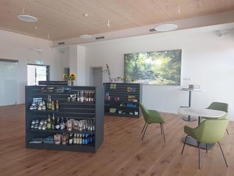 Der Losheimer Bürgermeister sieht darin einen klaren Auftrag den regionalen Tourismus weiter zu fördern, um ein nachhaltiges, aber anhaltendes Wachstum zu erreichen. „Wir werden mithilfe vieler kurz-, aber vor allem auch langfristiger Maßnahmen beispielsweise das Stausee-Areal fit für die Zukunft machen“, so Helmut Harth. „Aber auch die Schaffung weiterer neuer Veranstaltungsformate, wie z.B. das „Draussen am See-Outdoorfestival“ als Leuchtturmveranstaltung, zählen zum „Masterplan Stausee“ der ebenfalls Maßnahmen zur Saisonverlängerung und bauliche Investitionen im Strandbad vorsieht. Auch der Ausbau der Radinfrastruktur für Mountainbiker sowie im Alltagsradverkehr und die Aufwertung der Ortsbilder unserer Dörfer im Rahmen eines städtebaulichen Entwicklungskonzepts sind Teil unserer langfristigen Strategie. All diese Aspekte spielten auch beim Bau unserer neuen Tourist Information eine wichtige Rolle. Das Gebäude dient weniger als Funktionsbau, sondern gleicht eher einem „Flagshipstore“, in dem wir den Gästen eine authentische, regionale „Markenerlebniswelt“ präsentieren. Aus diesem Grund wurde bei der Gestaltung und der Inneneinrichtung die Themen „Natur“, „Wandern“, „Radfahren“ und „Wassersport“ bzw. „Stausee“ aufgegriffen. Die Gemeinde legte in diesem Zusammenhang besonderen Wert auf eine nachhaltige Bauweise mit natürlichen Materialien, wie beispielsweise Holz, und dem Einsatz regenerativer Energie durch eine Photovoltaikanlage, die mit einem Gründach kombiniert wird.“