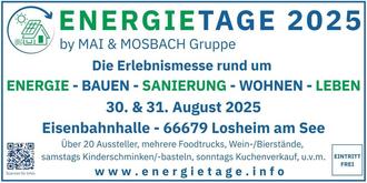 Am 30. und 31. August 2025 verwandelt sich die Eisenbahnhalle in Losheim am See erneut in einen lebendigen Treffpunkt für Innovation, Handwerk, Genuss und Gemeinschaft. Die ENERGIETAGE 2025 by MAI & MOSBACH Gruppe zeigen, wie viel Kompetenz, Qualität und Kreativität in unserer Region steckt – und bieten ein Erlebnis für die ganze Familie.