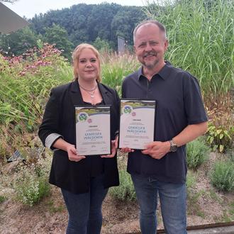 Bei der Eröffnungsfeier überreichte Birgit Grauvogel von der Tourismus Zentrale Saarland (TZS) die Urkunden vom Wanderinstitut an die Kommunen Losheim und Wadern.