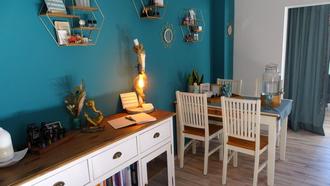Neben den Kursräumen gibt es einen Massagebereich und einen kleinen Shop mit allerlei Zubehör für Yoga, Kerzen und Räucherstäbchen. Hier findet auch Beratung rund um die Kraft der ätherischen Öle statt.