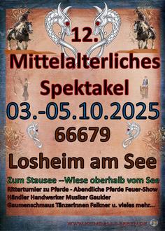 Ritter, Wikinger, Musiker, Gaukler, Wahrsagerei, Handwerker und Lagergruppen werden am 03. - 05. Oktober, 2025, wieder den Markt in Losheim am See bevölkern. Zum 12. Mal veranstaltet Heimdalls-Erben ein mittelalterliches Spektakel an dem schönen Stausee auf der großen Wiese neben den Wohnmobil-Stellplätzen.