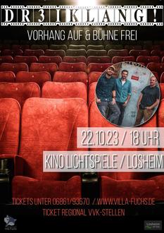 Die Jungs von Dr3iklang sind im Saarland zuhause und in der Region Merzig-Wadern längst keine unbekannte Größe mehr. Die Region liebt den Gesang, das Repertoire und die außergewöhnlichen Konzerte des Trios. Und zur dunklen Jahreszeit wird es in diesem Jahr besonders und neu. Im Kino Losheim präsentiert das Trio live und in Farbe mit Gitarre, Cajon und Piano ein filmreifes Ohrenkino, welches das Publikum für einen Abend aus der grauen Winterstimmung in die hellen Sphären munterer Musikkulissen entführen wird. Musikfans dürfen sich auf ein buntes und neues Live-Programm freuen. Perfekt ergänzt mit atmosphärischen Lichtstimmungen. Mehr wird noch nicht verraten…..