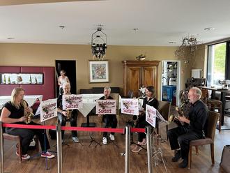 Zu Beginn der Veranstaltung gab es nämlich einen besonderen Empfang im Gartenbistro mit Sekt und Musik. gestaltet vom Losheimer Saxtett.