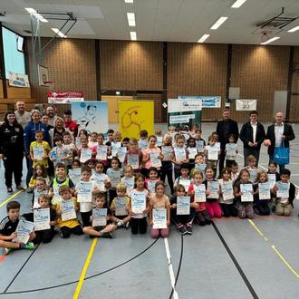 Am 25. September 2024 fand in Losheim die Auftaktveranstaltung der IKK Handball-Schulaktionswochen des HVS statt. Im Mittelpunkt standen an diesem Vormittag in der Dr.-Röder-Halle in Losheim am See natürlich Bewegung, Spiel und Spaß für die 80 Schülerinnen und Schüler der Nicolaus-Voltz-Grundschule Losheim – und das nicht nur mit dem Handball, sondern auch gemeinsam mit dem IKK-Maskottchen Fred. „Die Kinder waren mit Begeisterung, Freude, aber auch Ehrgeiz dabei“, freute sich Christoph Rehlinger, Präsident des Handball-Verbandes Saar, über die gelungene Auftaktveranstaltung zu den IKK Handball-Schulaktionswochen.