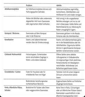 Hygieneschädlinge wie Wanderratten verunreinigen Lebensmittel, dringen in Gebäude ein, sind Vernichter von Vorräten und Lebensmitteln und Verursacher technischer Defekte. Sie können Allergien auslösen und Krankheitserreger auf Mensch und Tier übertragen. Ratten unterscheiden nicht zwischen öffentlichen und privaten Grundstücken und öffentlicher und privater Kanalisation (Hausanschluss). Deshalb sind nach § 2 Abs. 1 der saarländischen Verordnung über die Rattenbekämpfung („RattV“) alle Grundstücksbesitzer, die die tatsächliche Gewalt über Grundstücke ausüben, die Eigentümer und die Gemeinde zur Rattenbekämpfung verpflichtet; sie haben die Ratten auf ihrem Grundstück auf ihre Kosten zu bekämpfen. Die Maßnahmen an sich sollten gemeinsam abgestimmt werden.