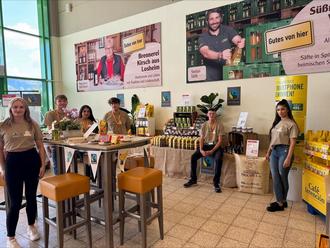 Auch die Auszubildenden bei Globus waren in der Fairen Woche aktiv und beschäftigten sich mit dem Fairen Handel. Sie organisierten an einigen Tagen im September einen Fairen Verkaufs- und Probierstand im Eingangsbereich des Marktes.