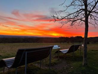Sonnenuntergang bei den Sinnesbänken Scheiden