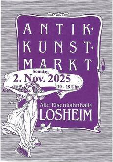 Die Eisenbahnhalle in Losheim ist am Sonntag, den 02.11.2025 wieder Treffpunkt für Sammler von Antik- und Kunstgegenständen. Die Veranstalter versprechen „eine gute Mischung der ausstellenden Händler“. Sie bieten je nach Ausrichtung Antiquitäten aus Porzellan, Glas, Silber- und Goldschmuck, Kleinmöbel, Bücher, Betonarbeiten, Bilder, Weihnachtsschmuck und vieles mehr an. Die „Antikfreunde Losheim“ um Patrick Hennig, der diesen Markt im Sinne seines Vaters, bekannt als der „Trödler“, weiterführt, freuen sich auf Sie. Das Mittagessen liegt in den bewährten Händen des Hubertushofes und Kaffee und Kuchen werden von der KG Losheim angeboten. An einer „Antikbar“ inmitten der Ausstellung gibt es die Gelegenheit, sich mit Gleichgesinnten zu unterhalten. Geöffnet ist der Antiquitätenmarkt am Sonntag von 10:00 - 18:00 Uhr.