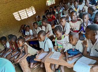 Statt auf dem Lehmboden lernen die Grundschulkinder jetzt auf Bänken und schreiben auf Tischen