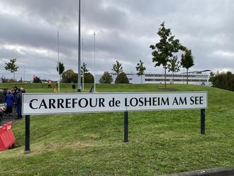 Zum Abschluss der Partnerschaftsreise wurde am Sonntagvormittag der Kreisverkehr als „Carrefour de Losheim am See“ offiziell eingeweiht.
