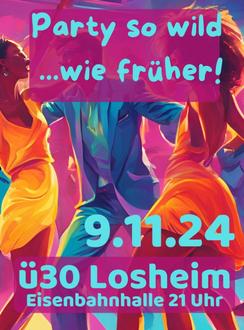 Ihr wollt mal wieder so richtig abfeiern, so wild wie früher: die perfekte Gelegenheit dazu gibt es am 9. November in der Eisenbahnhalle in Losheim. Das üparty-saarland-Team lädt euch zur kultigen ü30 Party ein. Coole Musik von früher und heute, leckere Longdrinks und nette Leute… und so wie ihr es kennt: eine Mega-Stimmung.