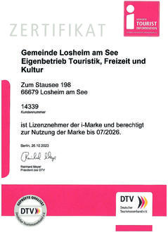 Wir freuen uns, dass unsere Tourist Info das Prüfverfahren im Rahmen der i-Marke erneut erfolgeich bestanden hat. Damit ist unsere Touristinformation nun für drei Jahre mit der i-Marke des Deutschen Tourismusverbandes ausgezeichnet.