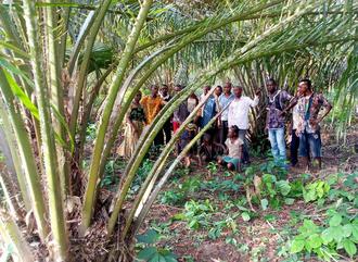 Vor 10 Jahren begann die Waldbauern nach Rückkehr in ihr kriegszerstörtes Dorf einen Ölpalmengarten anzulegen