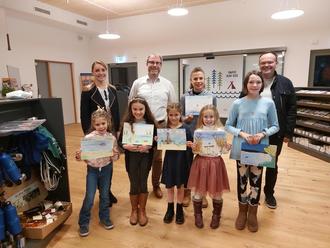 Ließen ihrer Kreativität rund um den Losheimer Stausee freien Lauf: die Gewinnerinnen des Malwettbewerbes 2022 mit Bürgermeister Helmut Harth (rechts im Bild), Globus Losheim-Geschäftsführer Kay Klein (hinten Mitte) und Swetlana Gomer von der Tourist Info (links im Bild).