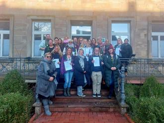 Nach erfolgreicher Ausbildung durften sich die zwanzig teilnehmenden Kita-Fachkräfte aus Losheim am See, Wadern und Merzig über ihre Zertifikate mit Fachreferentin Petra Funk-Chungu (ganz vorne links) freuen.