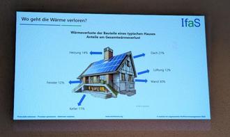 Hier wurden verschiedene Dämmstoffe vorgestellt, Einsparpotentiale genannt und motiviert, etwas in seinem Haus zu ändern. Christoph Dohm betonte, dass es nicht immer gleicht eine Komplettdämmung des Hauses sein muss. Oft reicht es aus, z.B. auf dem Dachboden die Bodenplatte zu dämmen, um die Wärme im Haus zu halten. Er zeigte die Stellen auf, an denen in der Regel, besonders im Altbau, die meisten Wärmeverluste zu verzeichnen sind und gab Tipps, wie man dort mit kleineren Maßnahmen Vorsorge treffen kann.