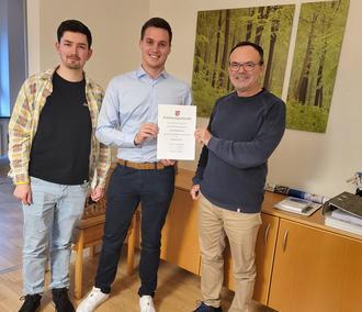 v.l. Jona Steuer, Personalabteilung, Tobias Ewerhardy und Bürgermeister Helmut Harth