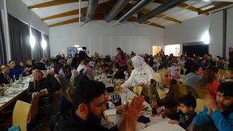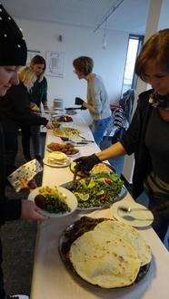 Während des gesamten Nachmittags waren viele Helferinnen und Helfer im Einsatz, die Kaffee und Getränke ausschenkten, in der Küche alles wieder in Ordnung brachten und die von den Gästen mitgebrachten süßen und herzhaften Speisen austeilten. Am Ende brachten alle gemeinsam den Saal wieder in seinen Ursprungszustand.