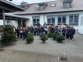 Die Kinder hatten sichtlich Spaß mit den kleinen Nordmanntannen und in den Klassen und Gruppen wurde sogleich mit dem Basteln und Schmücken begonnen.