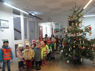 Auch in diesem Jahr folgte die Kita Villa Regenbogen wieder der Einladung des Bürgermeisters den Weihnachtsbaum im Foyer des Rathauses zu schmücken.