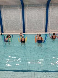 Den Aquafitness Kurs besucht als kontinuierliche Teilnehmerin die Ehrenamtliche Seniorenbeauftragte Frau Greweldinger.