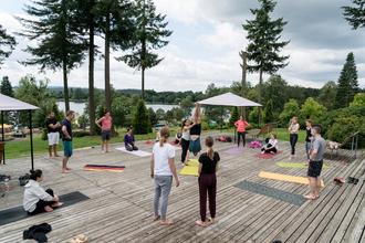 Entspannung und Körpergefühl vermitteln die Yoga-Kurse unter professioneller Anleitung im reizvollen Ambiente des Seegartens am Stauseeufer.