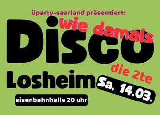Bei “Disco wie damals„ am 14. März in der Eisenbahnhalle in Losheim habt Ihr nach dem ersten Riesenerfolg im September nun schon zum zweiten Mal die Möglichkeit, auf die beste Musik von damals zu tanzen, aufgelegt natürlich von den Kult DJ’s von damals…
