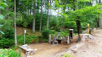 Der „Rehbrunnen“ ist eine von zwei Getränkestationen entlang des Felsenweges. Hier können durstige Wandernde sich mit Getränken erfrischen – natürlich gekühlt im Wasser des Lannenbaches.