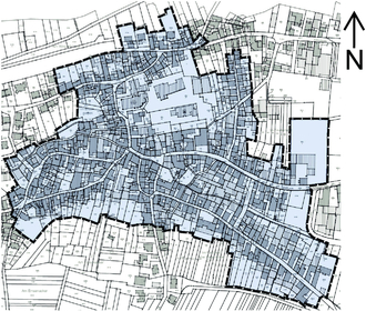 Der Geltungsbereich der sich in Aufstellung befindenden Erhaltungssatzung ist auf dem abgedruckten Lageplan mit einer gestrichelten Linie umrandet.