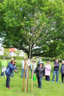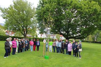 Mit großem Jubel wurde Bürgermeisterin Gabriele Flach am vergangenen Montag im Kalmitbad zur Baumtaufe gegrüßt. Es sind die Hutfrauen, treue Dauerschwimmer im Kalmitbad, die einen „Tulpenbaum“, lateinisch: Liriodendron tulipifera, als Erinnerungsbaum finanzierten. Mit herzlichen Worten brachte die Bürgermeisterin beim Festakt ihre Freude über diese gute Tat und gleichzeitig ihren Dank an die 29 Spender/innen zum Ausdruck.